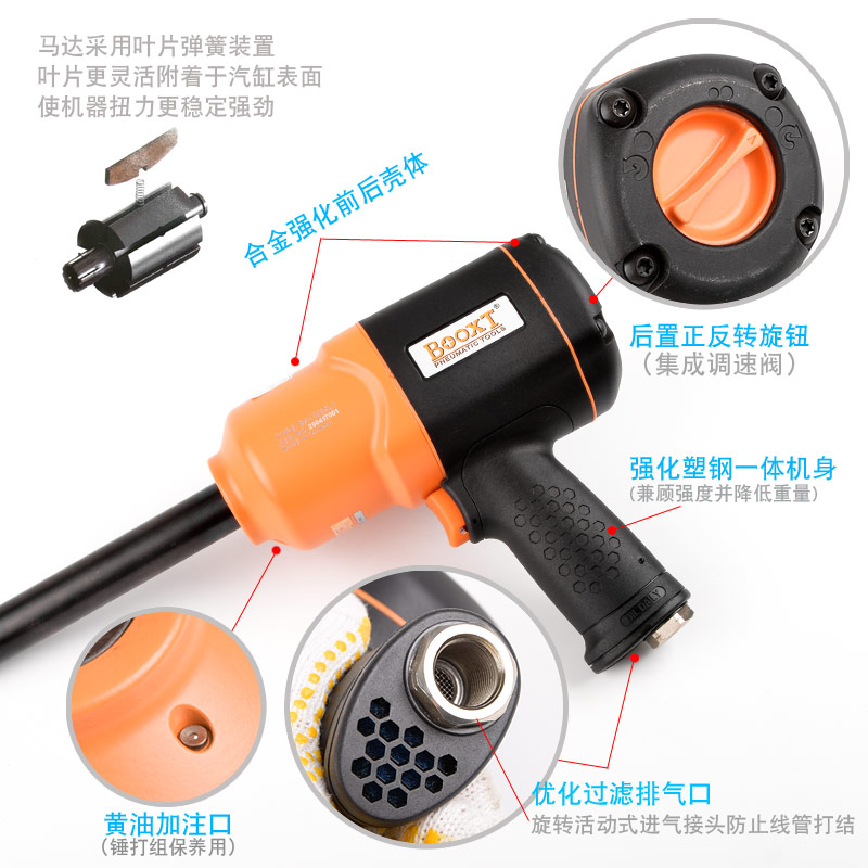 加長軸小風炮特點:(塑鋼外殼,強度高重量輕,扭力大)